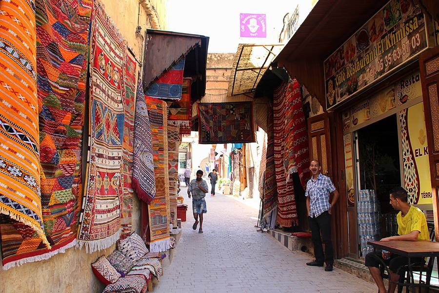 La nostra guida ti porterà alla medina per vedere i negozi del mercato o i suk. Vedremo le famose opere morenti con il panno dai colori vivaci appeso ad asciugare; il Palazzo Reale, diverse moschee, scuole teologiche e negozi dove possiamo vedere artigiani che adattano il loro lavoro. La passeggiata di oggi è uno sguardo straordinario sulla vita della città marocchina dove poco è cambiato nel corso dei secoli.