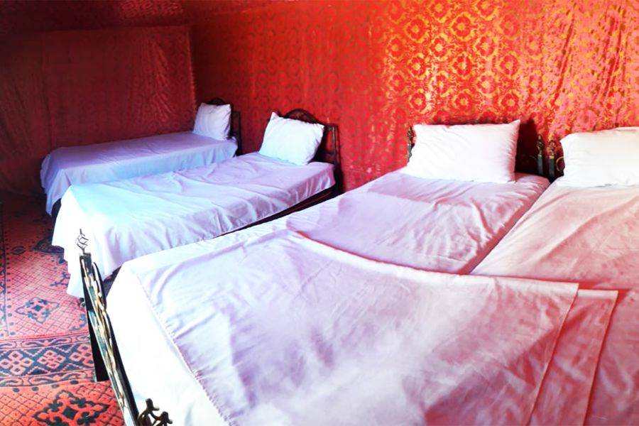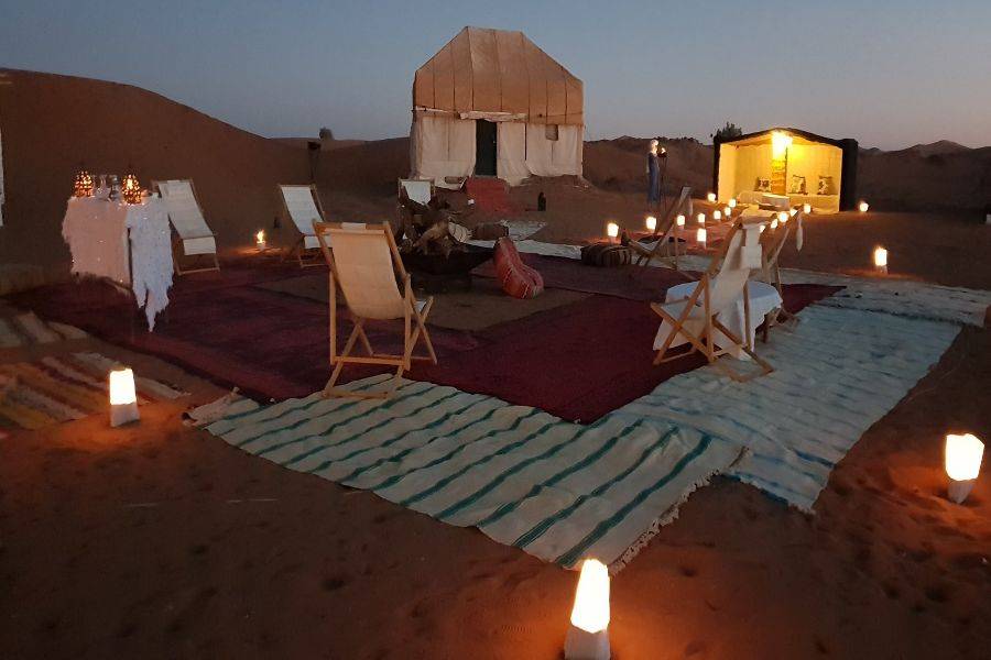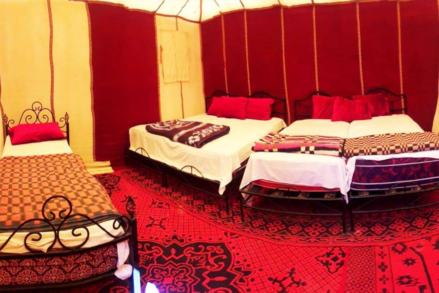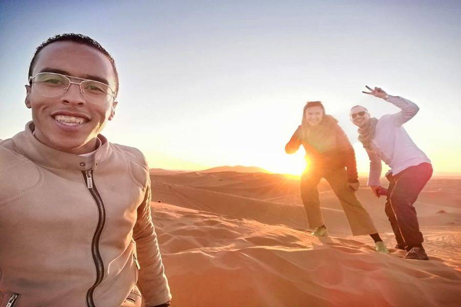 La prima tappa sarà ad Azrou, dove ci godremo una passeggiata alla scoperta della foresta e delle scimmie barbaresche. Raggiungeremo Midelt che è un piccolo villaggio bellissimo e pulito famoso per la produzione di mele. Attraverseremo la Ziz Valley che ha molte oasi lungo la strada. La seconda fermata è a Errachidia, famosa da Kaser Souk, che è un mercato tradizionale ed è il luogo più antico di questa città. Incontra gente locale con un mix di culture diverse tra berbero e arabo. Ci fermeremo per pranzare in quella città prima di prendere la strada. Lasciando Errachidia e attraversando un paesaggio affascinante, passeremo da un'ampia terra e da una splendida strada con molte palme Oasis. Passando da Aoufouss poi Erfoud per vedere il diverso tipo di montagne che sembra molto diverso da quello che hai visto in Marocco. Raggiungeremo Errissani, una città bellissima e accogliente dove visiteremo Moulay Ali Cherif, che è mausoleo con un giardino calmo e bellissimo. La nostra ultima fermata nel primo giorno sarà Merzouga, cavalcheremo un cammello per dirigerci verso le dune di Erg Chebbi e incontrare i nomadi locali con un grande benvenuto, godersi la notte con uno splendido scenario di strumenti nomadi tradizionali e balli. Quindi trascorri una notte meravigliosa sotto il cielo blu scuro nell'ampio deserto marocchino.
