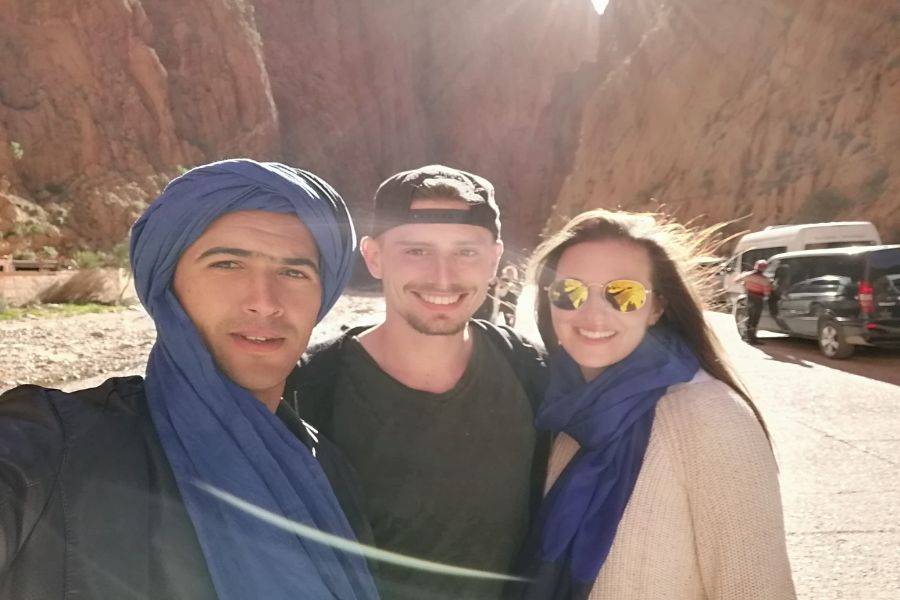 Svegliati la mattina, rilassati e goditi il tranquillo villaggio mentre ti godi una deliziosa colazione nel riad, preparati a prendere la strada per un'altra avventura. Passando da Bomalen Dades per vedere le altre bellissime gole, lasciati stupire dalla bella forma della montagna e dal luogo tranquillo. La nostra prossima visita sarà la valle delle rose, luogo straordinario ogni aprile e maggio, dalla valle delle rose vengono raccolte da 3.000 a 4.000 tonnellate di fiori selvatici, e se sei fortunato incontrerai questo evento per godertelo con la gente del posto . Arrivare a Ouarzazate osservando i cambiamenti del paesaggio all'interno della strada, scoprire la città con il nostro autista, visiteremo lo studio cinematografico internazionale famoso per la produzione di molti film storici come Il Trono di Spade e altro, dal vivo uno scenario cinematografico all'interno di questo luogo, poi ci dirigeremo verso Ait Ben Haddou per goderci un soggiorno in mezza pensione con una deliziosa cena.
