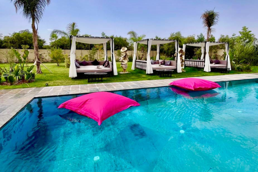 Rilassatevi nella nostra villa soleggiata: nuoto, spa e pranzo gourmet con una vista mozzafiato sull'Atlante
