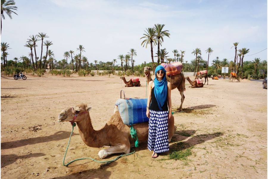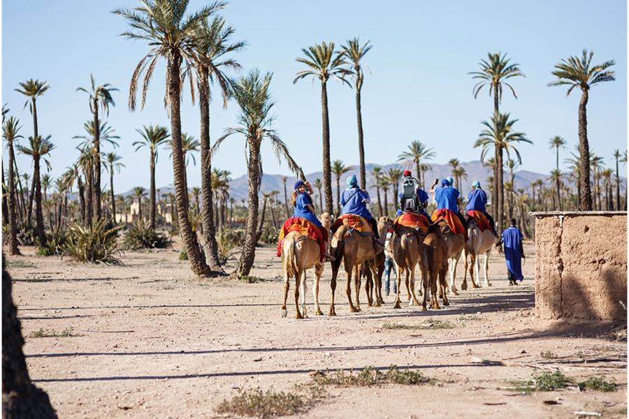 • Scopri la corsa in cammello con l'abbigliamento del Sahara a Marrakech Palmeraie.