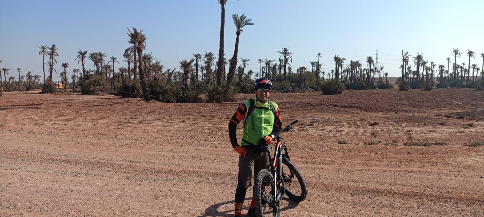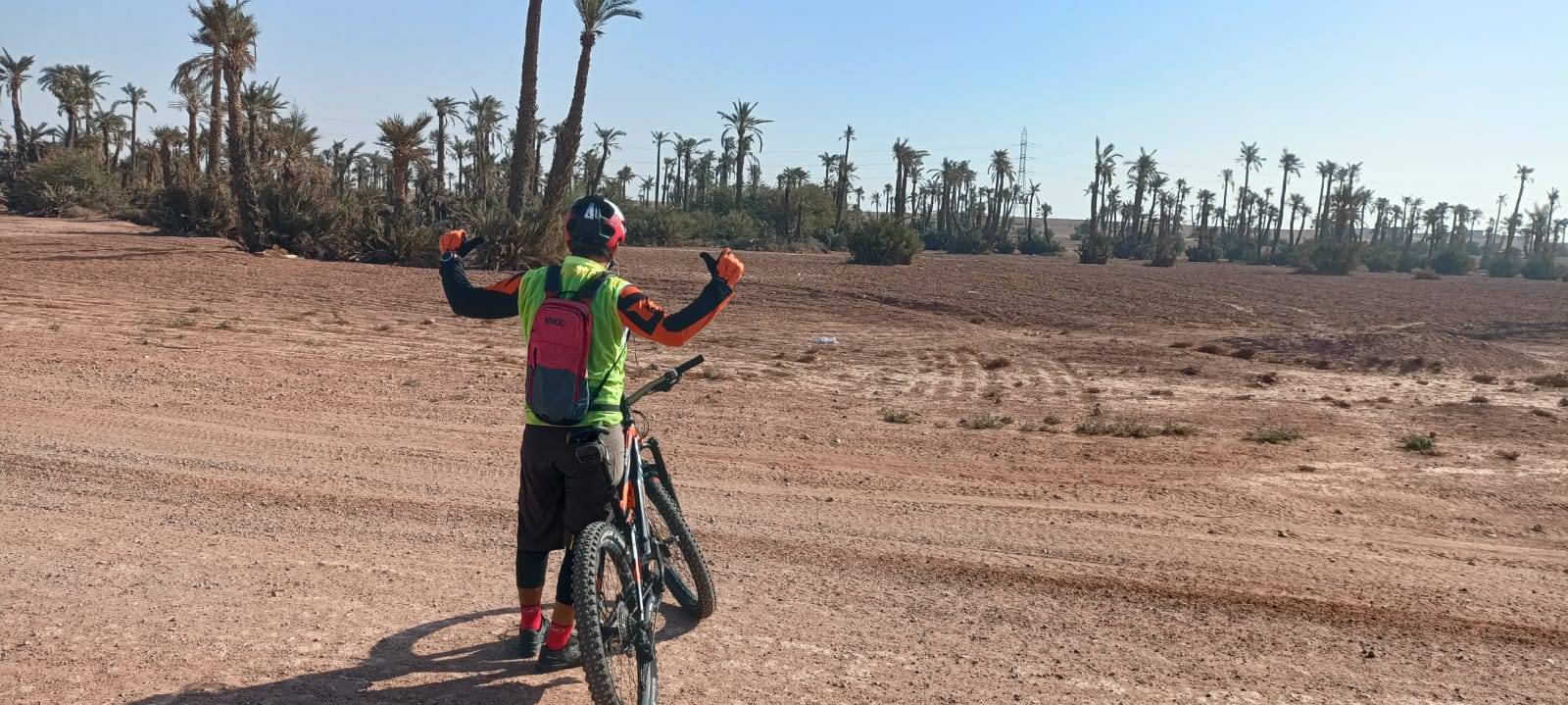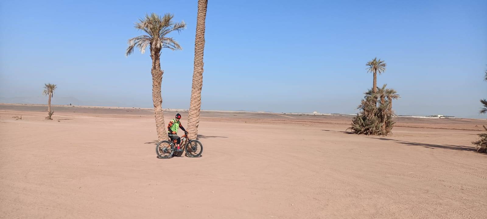 Tour in bicicletta nella Palmeraie (palmeto) che è un'oasi di palme di diverse centinaia di migliaia di palme fuori Marrakech, situata ai margini della parte settentrionale della città, ad un'altitudine di 580 m sul livello del mare, misura 8,0 km di lunghezza e copre una vasta area di 140 km2, questa parte di Marrakech è conosciuta come una delle destinazioni preferite a Marrakech per gli appassionati di sport motoristici come ATV 4/4 o per fare un giro in cammello o persino in mongolfiera.